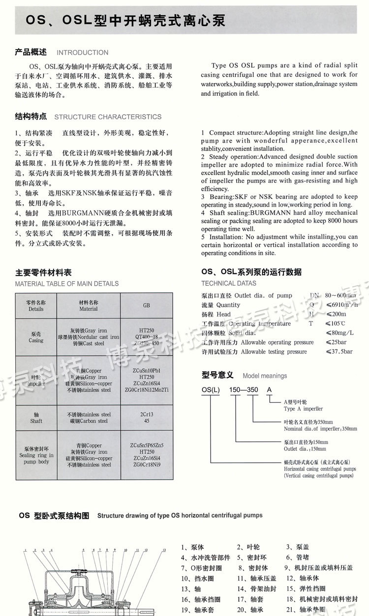 無負(fù)壓供水設(shè)備 博泵科技 OS OSL中開蝸殼式離心泵 淄博興瑞 博泵